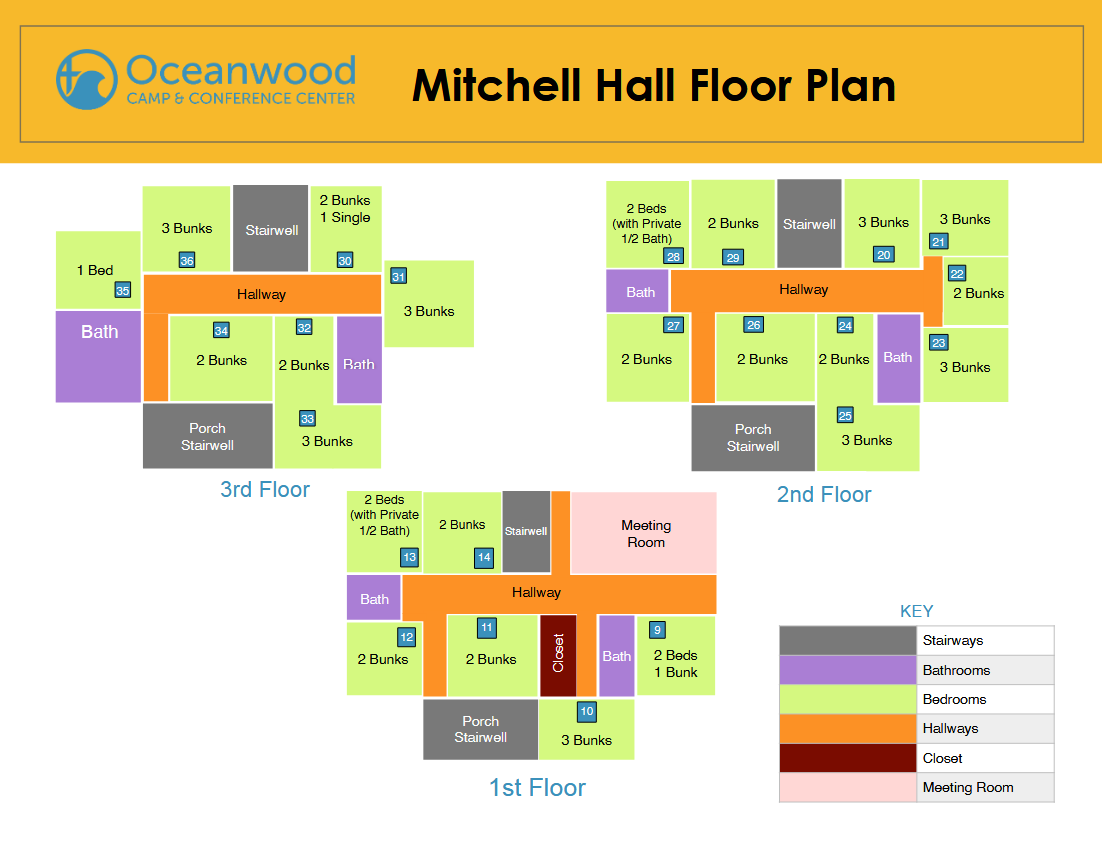 Oceanwood has several lodging facilities to meet your group’s needs ranging from hotel-style rooms, family-style cabins, and a large three-story dormitory center. All retreat lodging spaces are heated and have bathroom facilities. Meeting areas are made available to all overnight guests as part of your retreat package.